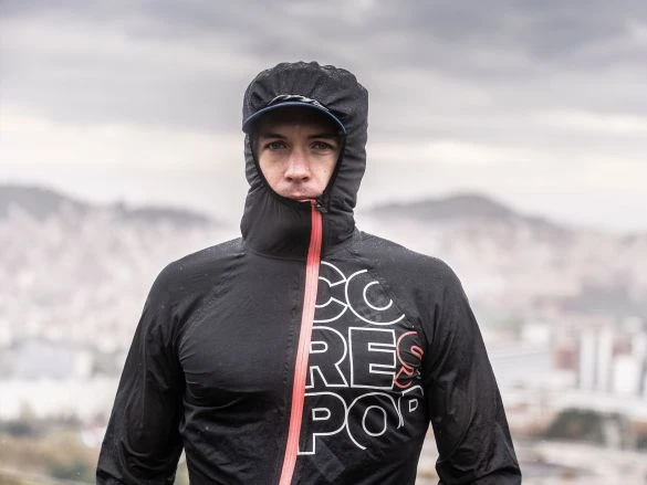 Het Compressport hurricane 25/75 waterdicht hardloopjack is waterproof maar toch ademend.