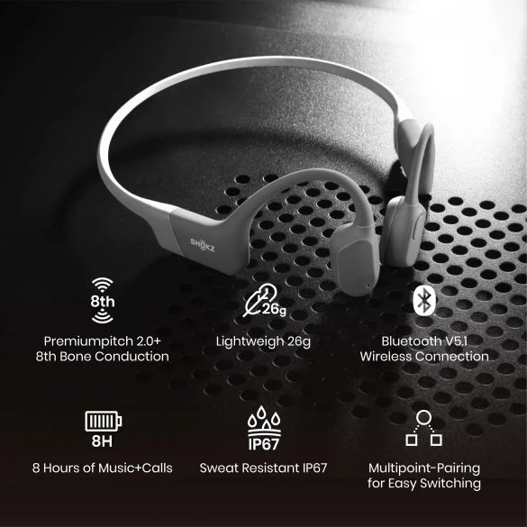 Uitgerust met de nieuwste 8e generatie bone conduction technologie en stuurt de audio direct naar het binnenoor.