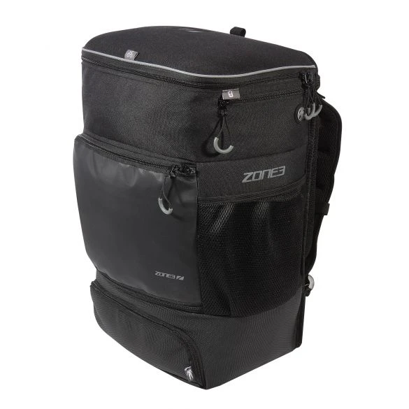 Het centrale hoofdcompartiment is ideaal voor het opbergen van uw tri- en casual kleding, schoenen en alles wat u zich maar kunt bedenken. Aan de achterkant van de opening zitten interne zakken die ideaal zijn voor het opbergen van uw sleutels, brillen. Hier zit ook een waterdichte zak voor bijvoorbeeld documenten of voeding die niet nat mag worden.
